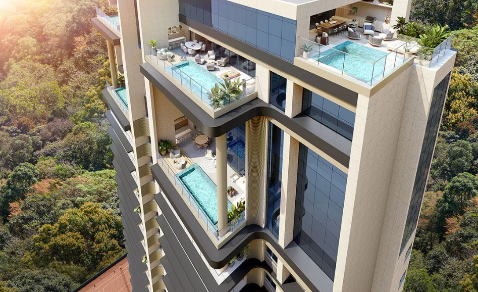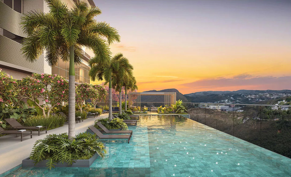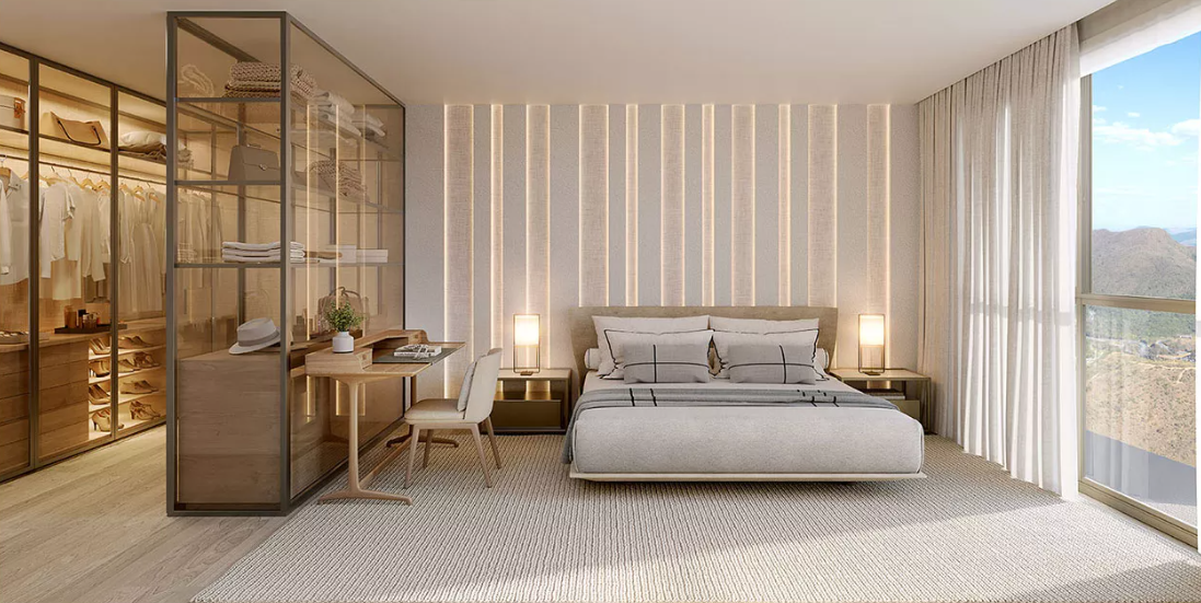 Ele se posiciona como “ilha de luxo e sofisticação”, próximo ao Vila da Serra, com vistas amplas para as montanhas e para a cidade.