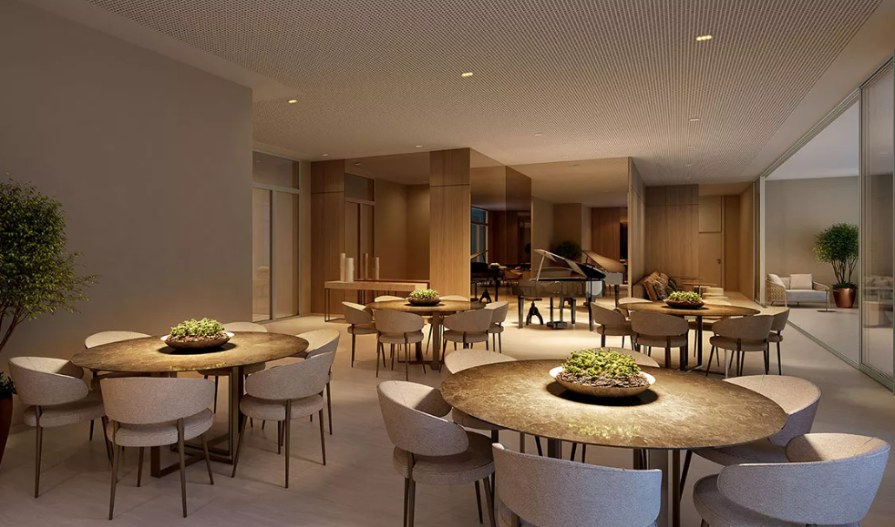 Comodidades adicionais: home office, meeting room, adega, bicicletário, car wash, tool sharing (ferramentas compartilhadas), minimarket “Grab & Go”, infraestrutura de WiFi nas áreas comuns.
