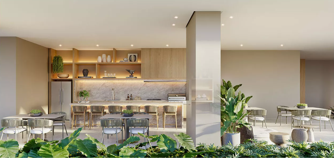 Comodidades adicionais: home office, meeting room, adega, bicicletário, car wash, tool sharing (ferramentas compartilhadas), minimarket “Grab & Go”, infraestrutura de WiFi nas áreas comuns.