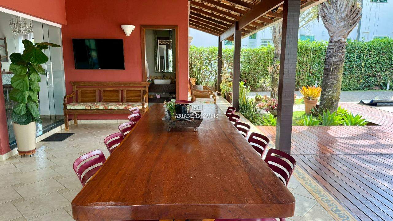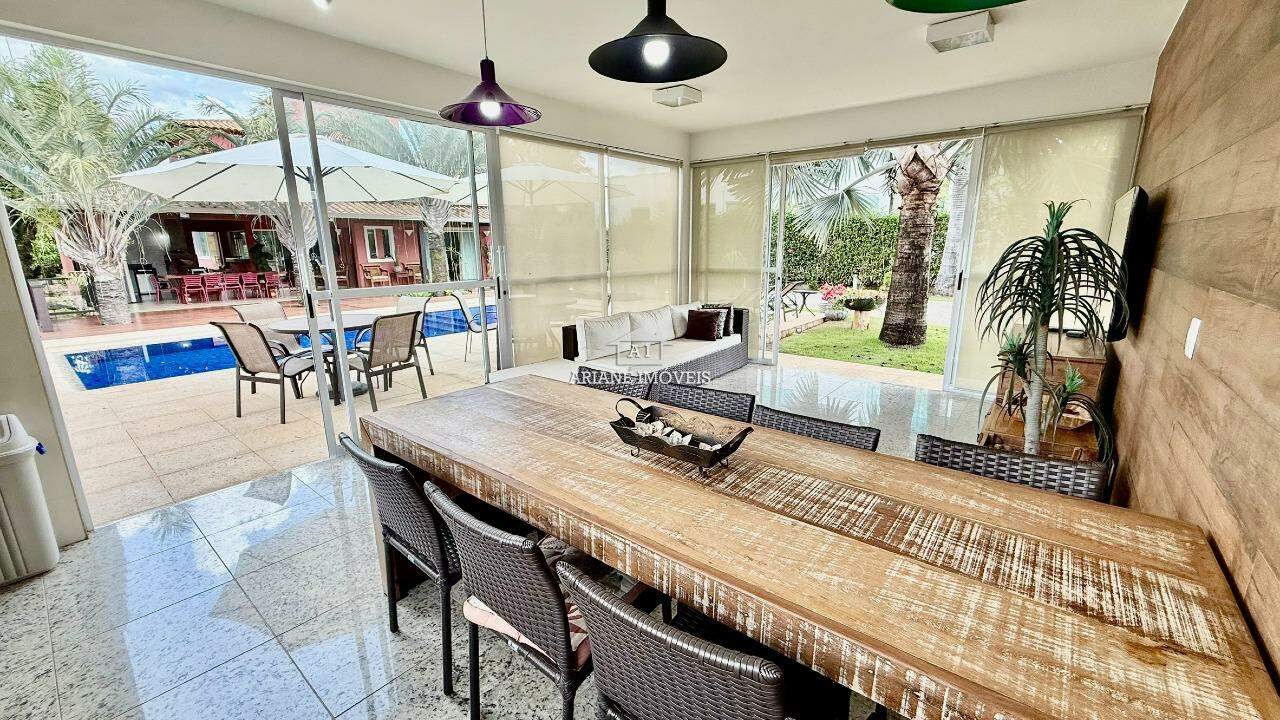 Excelente casa de condomínio residencial em Esmeraldas, no Condomínio Aldeias do Lago. Com 215 m² de área interna em terreno de 1.030 m², além da belíssima área gourmet e piscina aquecida com deck de madeira. A casa dispõe de 4 quartos (sendo 2 suítes e 2 semi-suítes), 5 banheiros, 3 salas (Sala de TV, Sala de Jantar e Sala Gourmet) e despensa. Acabamentos com armários embutidos na cozinha e nas 2 áreas gourmet, quartos e banheiros.